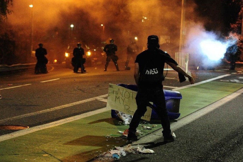 Несмотря на применение дубинок и резиновых пуль, протесты в Портленде не утихают. На фоне относительно мирных протестов в других городах, в Портленде протесты периодически сваливаются в небольшие стычки с полицией, в результате чего уже несколько десятков человек было арестовано, а один человек получил ранение. Ниже, фотографии протестов за 11 и 12 ноября.